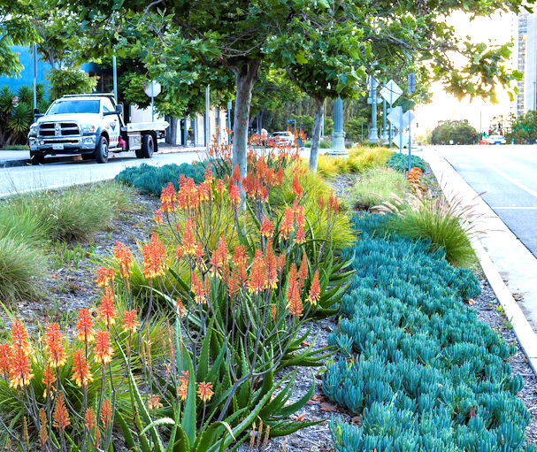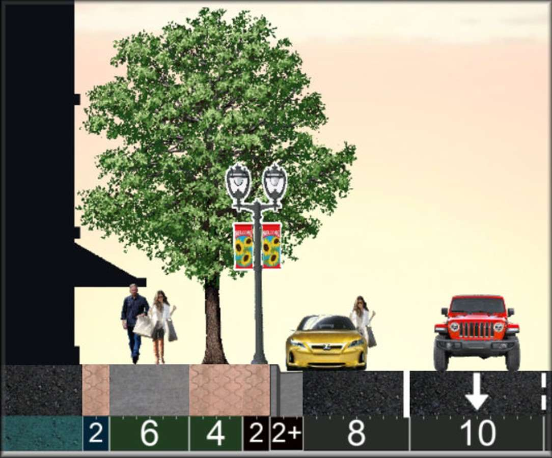 Trees: Many and large, due to Silva Cells or root trenches, but further than 10-ft from cars.