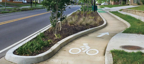 Bulb-outs and Trees: Pedestrian bulb-outs and trees planted IN the parking lane will slow traffic even more than parking alone, due to higher visual density and a greater sense of enclosure. Want slower speeds? Get people and trees closer to cars!
