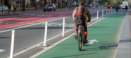 Bike and Pedestrian safety is affected by the speed of traffic, number of lanes, availability of median refuge, parking or other buffers that protect pedestrians, overall intersection complexity, and whether the street is one-way or two-way.