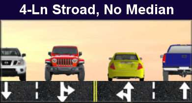 depict common median situations and their effect on speed relative to a typical 5-lane Stroad.