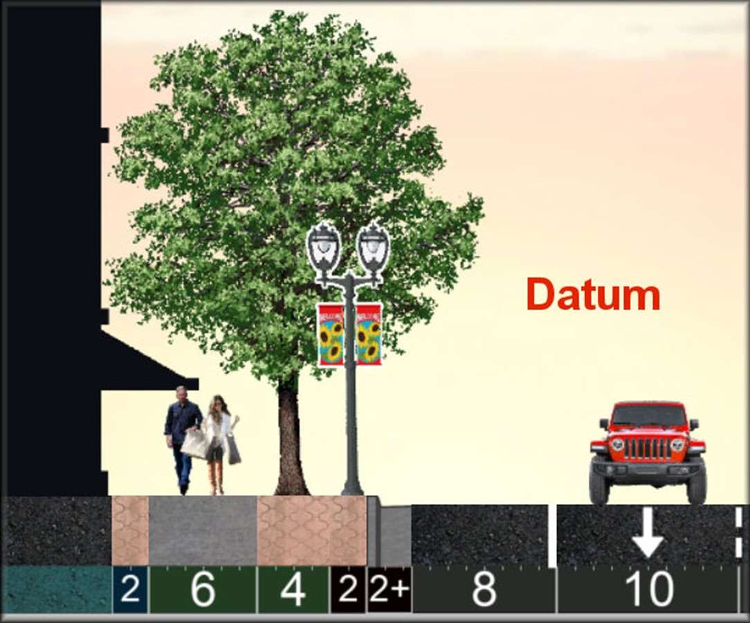 • F3 = Shoulder: Datum is "Wide, no parking" (F3 = 1). You will have parking w/trees & bulb-outs (F3 = .85)